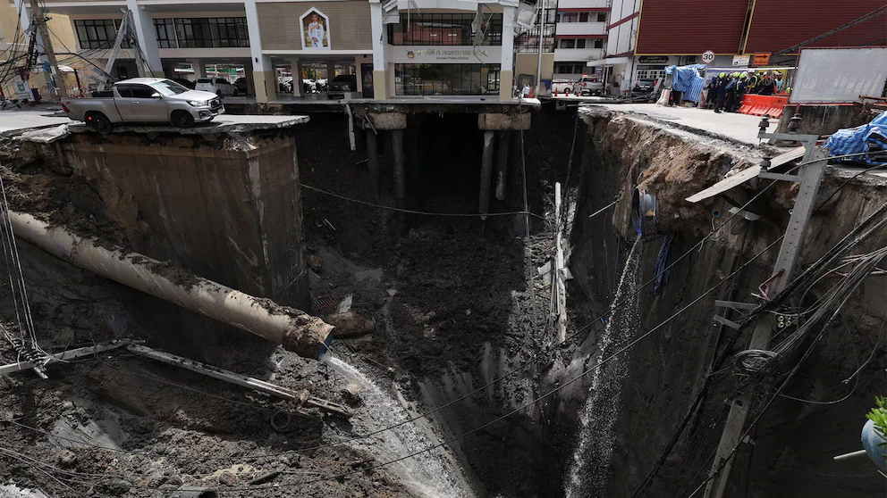 Un socavón de grandes dimensiones interrumpió la rutina de la capital tailandesa este miércoles, al colapsar un tramo de la avenida Samsen, justo frente al Hospital Vajira, y formar un cráter de hasta 50 metros de profundidad y cerca de 900 metros cuadrados, según reportes de Associated Press (AP) y Reuters.